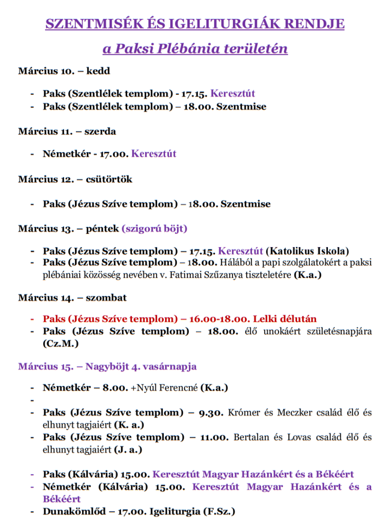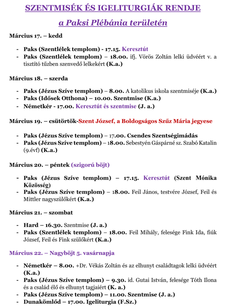 03.16.-03.22. Miserend és hirdetések