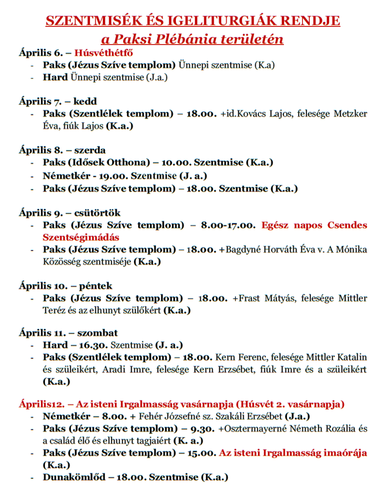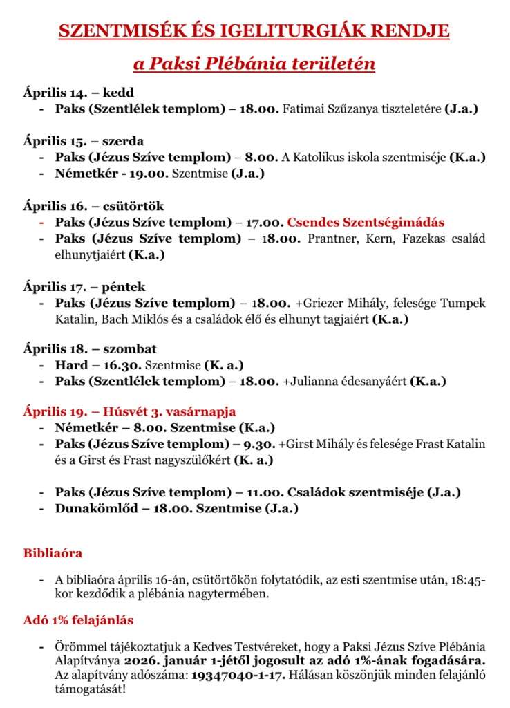Római Katolikus – Jézus Szíve – Plébánia Paks